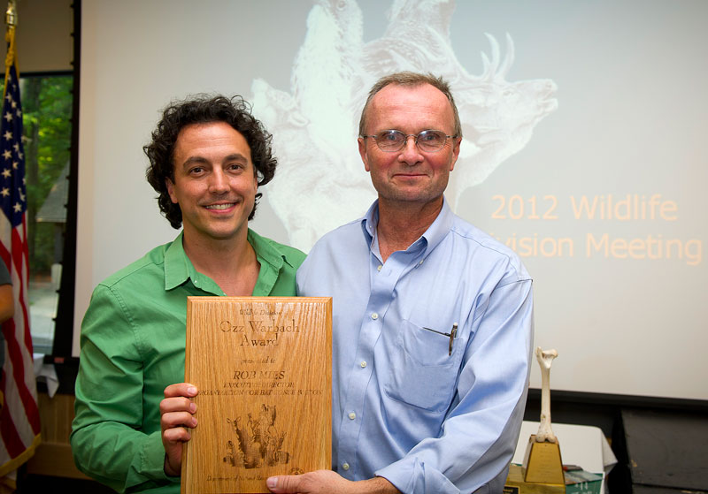 The “Ozz Warback Award” was given to Rob Mies for his outstanding partnership with the Wildlife Division of the Michigan Department of Natural Resources during their annual meeting in Roscommon, Michigan. The award for outstanding partnership was named after Ozz Warbach, a research biologist and the Division’s conservation illustrator, who retired in 1977. Like the award that has been established, Ozz demonstrated outstanding partnership with the public in making people aware of environmental and wildlife issues long before it was popular.